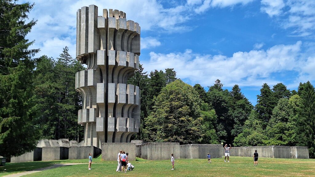 L’ultimo giorno del nostro viaggio ci conduce a Podgarić, dove si trova uno degli Spomenik più assurdamente originali dello spazio jugoslavo. Il suo design avveniristico sembra provenire da un’altra dimensione, portandoci contemporaneamente nel passato della Jugoslavia dominata dall’utopia e nel futuro di un’Europa distopica. Un simbolo perfetto per concludere questa avventura, prima di rimetterci in viaggio verso l’Italia, dove ci salutiamo!